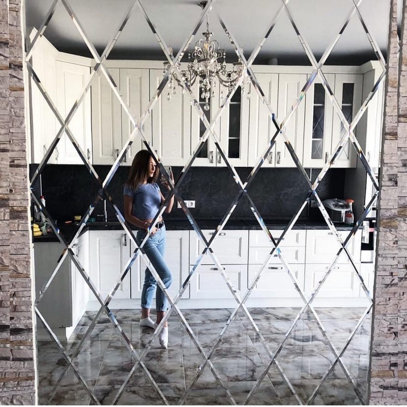 Использована серебряная зеркальная плитка «вытянутый ромб».